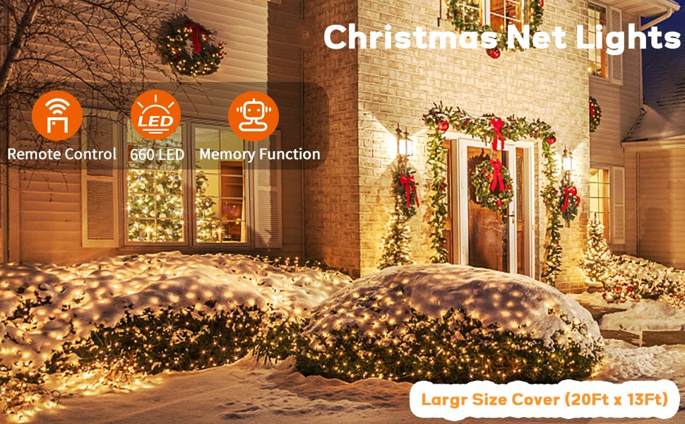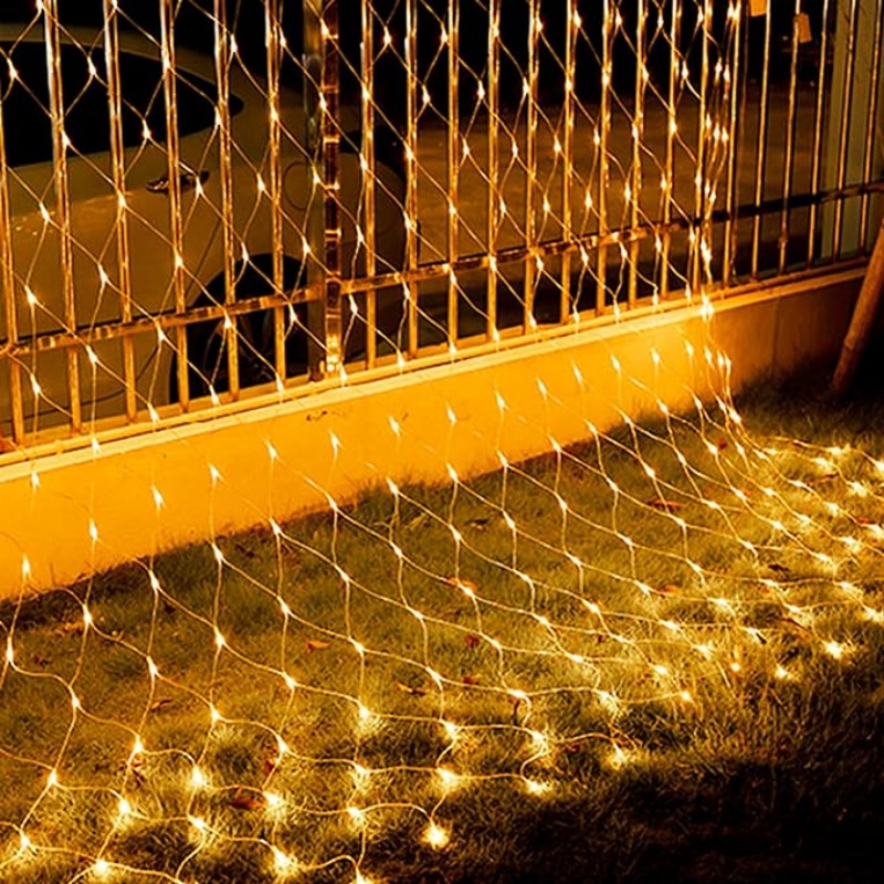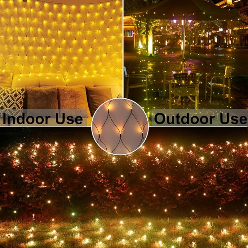 * Warm White Net Lights: Outdoor decoration led net light, large size lay easily and greatly over your bushes.