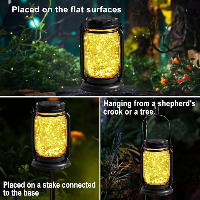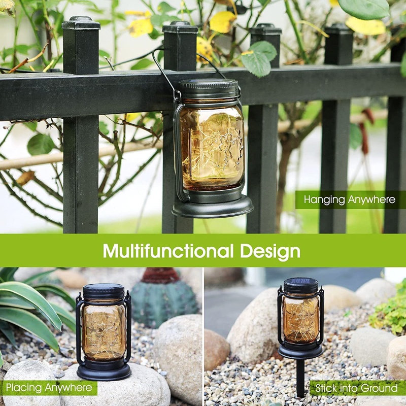 Each mason jar lantern lights has a solar panel,no wiring needed.easy to set up, Eco-environment and energy saving.1 piece AAA rechargeable battery included, it can also work with AAA battery which there is not enough sunshine or rainy days.