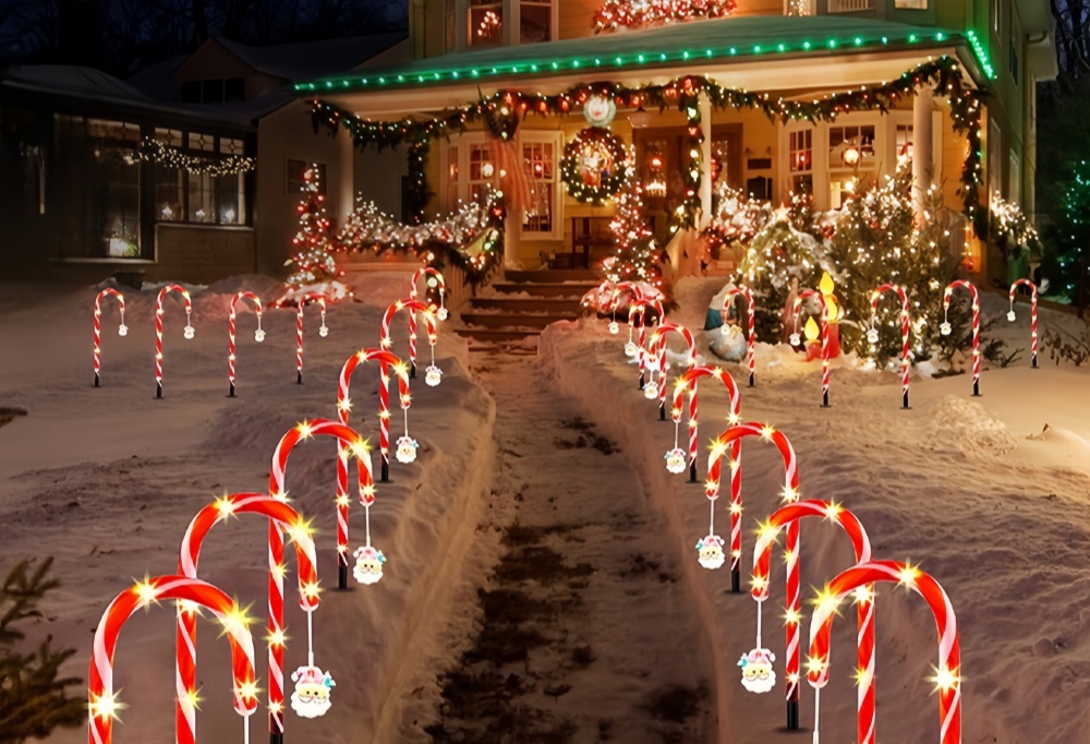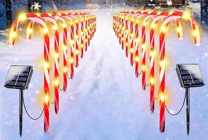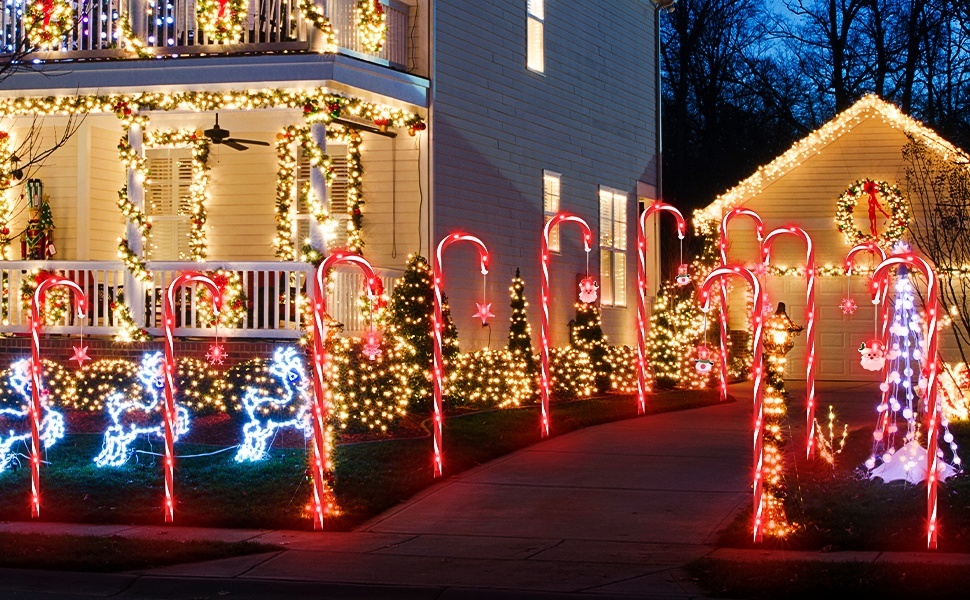 The Christmas candy cane pathway lights are perfect for outdoor Christmas decorations.