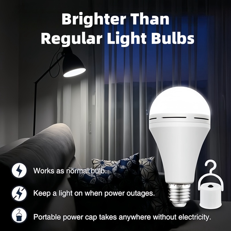 Battery operated bulb works like a regular LED bulb and automatically recharges during daily use. Built-in 1200mAh battery backup, providing 3-5 hours of illumination during power outages.