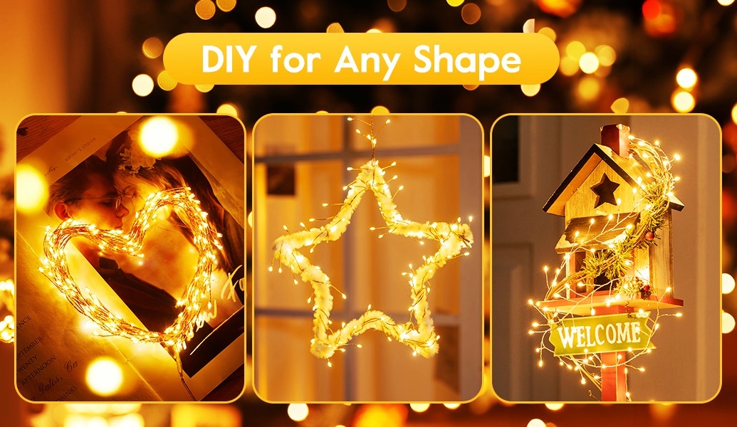 This durable LED fairy light line is made of pure copper material. It can easily conform to any shape. We can bend the copper wire over a thousand times, and it will not break. Try to wrap string lights to anything you like.fairy lights are enough for any indoor and outdoor decor. Moreover, twinkle lights with remotes are low heat emission, and safe to touch
