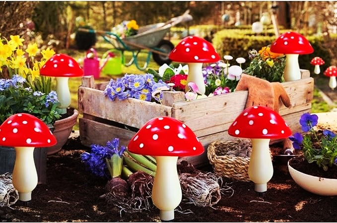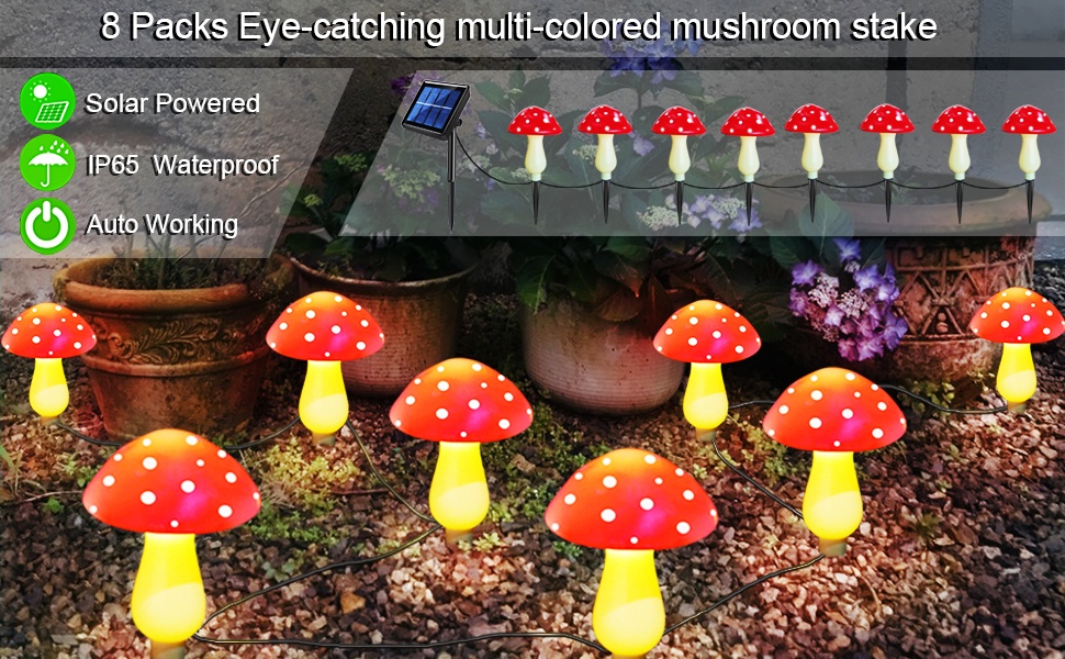 Solar mushrooms are a nice addition to garden decor, making the garden a wonderland, will fit perfectly with your decor around house, you will get so many compliments on them from your neighbors and friends when people see them light up at night.