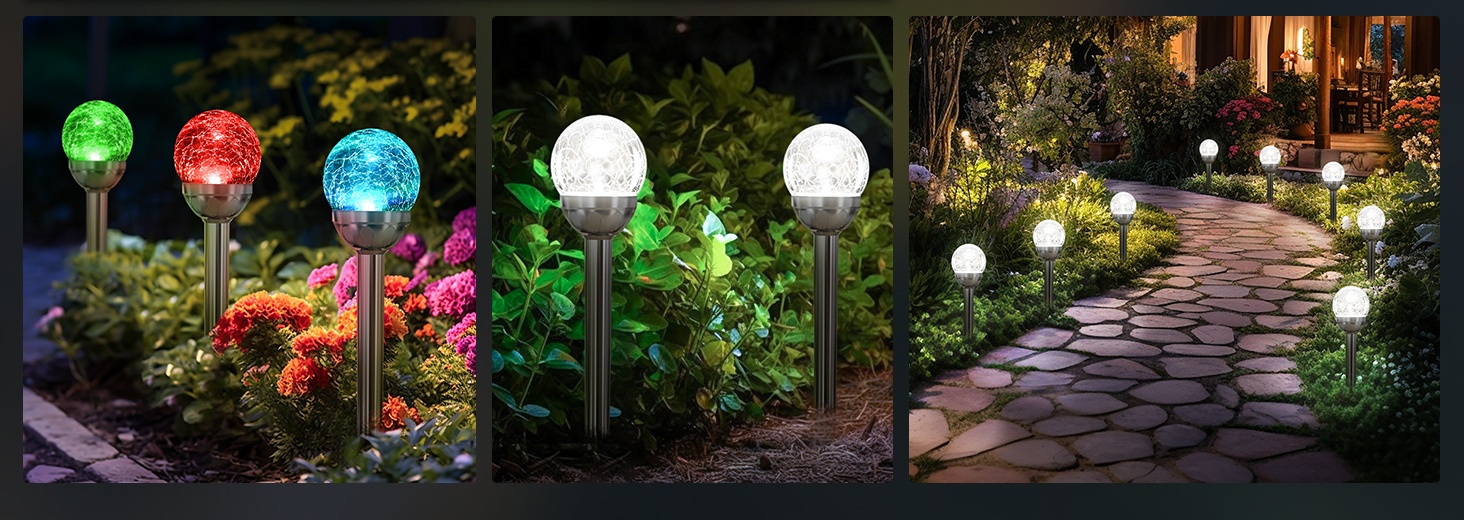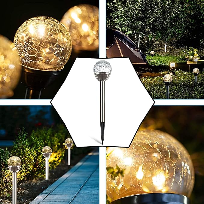 The cracked glass ball garden LED lights, plenty of quantity and rich colors to meet your every decorating needs, make your front yard or garden an attractive place in the neighborhood.