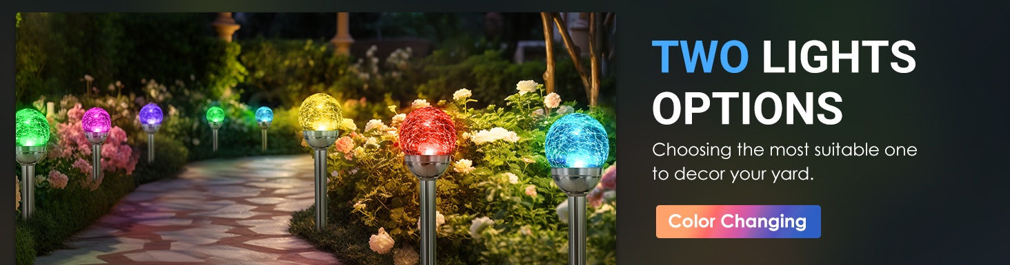 The solar garden lights has two lighting modes:cold white and color changing RGB. The warm white is suitable for everyday lighting and decorating. The RGB mode is perfect for holidays such as Halloween and Christmas.