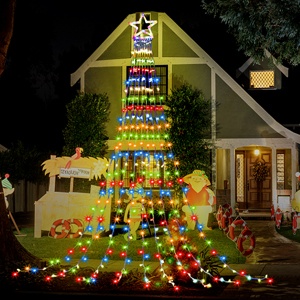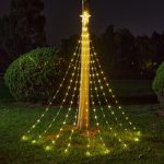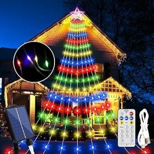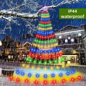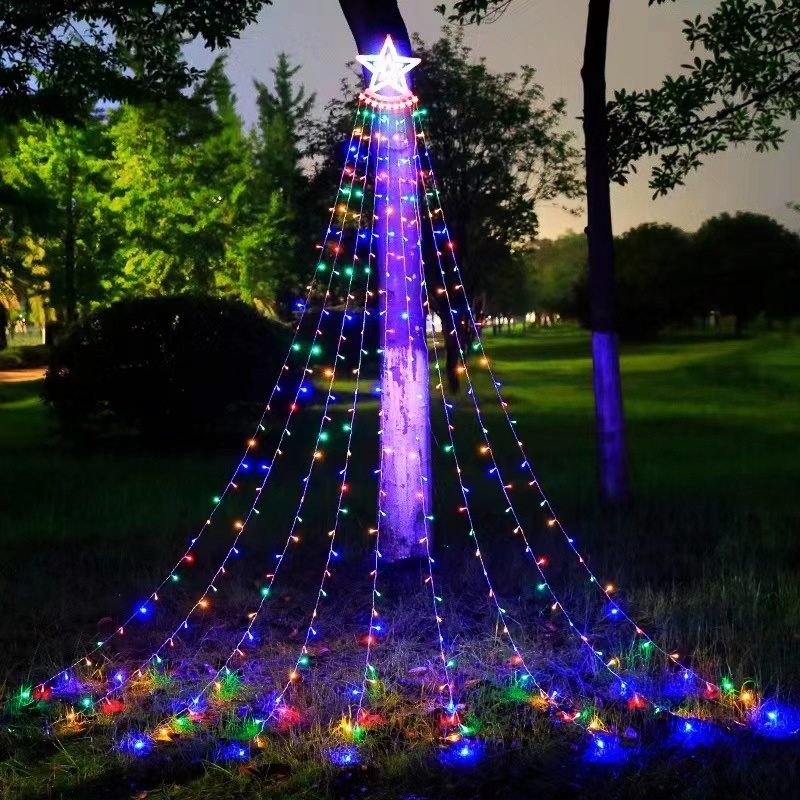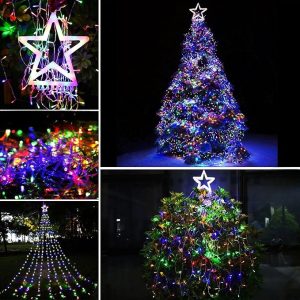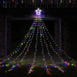 Delight your neighborhood with this Christmas light display. Simply hang the Christmas star lights from a tree, the roof, or the side of your house to decorate your room or backyard.Grace your living room with this Christmas decoration light.This elegant outdoor Christmas decoration has a lighted topper star with a tail of 9 light strings.