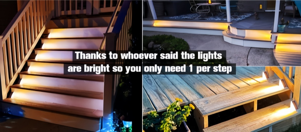 You can attach these deck step lights to any edge using the 3M tape or screws provided. They are a subtle size that blends in easily with the deck, so you don’t have to worry about tripping.