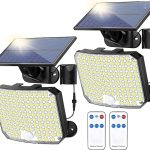 The dusk to dawn solar flood light has LED units, each covered by a convex lens to focus the light distribution to the same direction, so the entire solar spot lights gives off bright concentrated light rays down to the ground without much fading. The cool white bright light boosts visibility and contrast at night so you can see everything clearly.