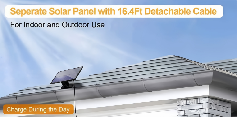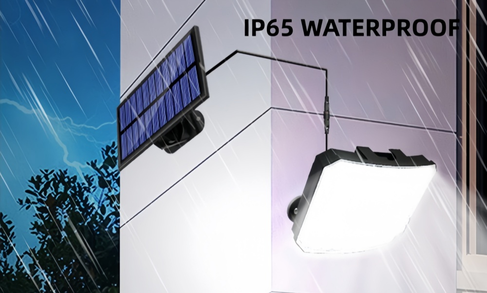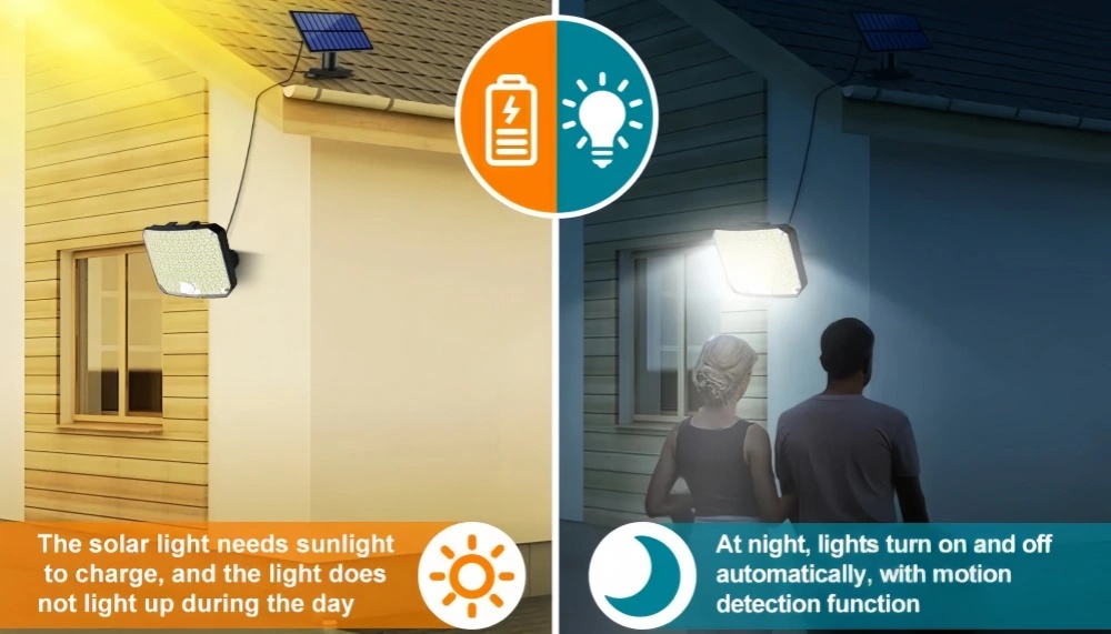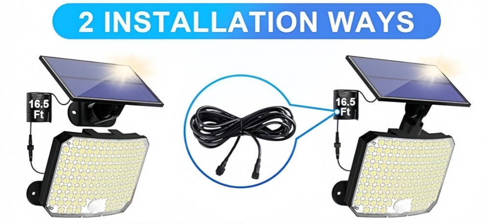 The solar flood lights is solar panel and light can be installed in different locations, with the solar panel absorbing most sunlight and light illuminating where light is needed. For backyards or areas that are shaded during the day, the solar light with a long extension cord can position the solar panel in a sunny spot like the rooftop and light up the darkness at night.