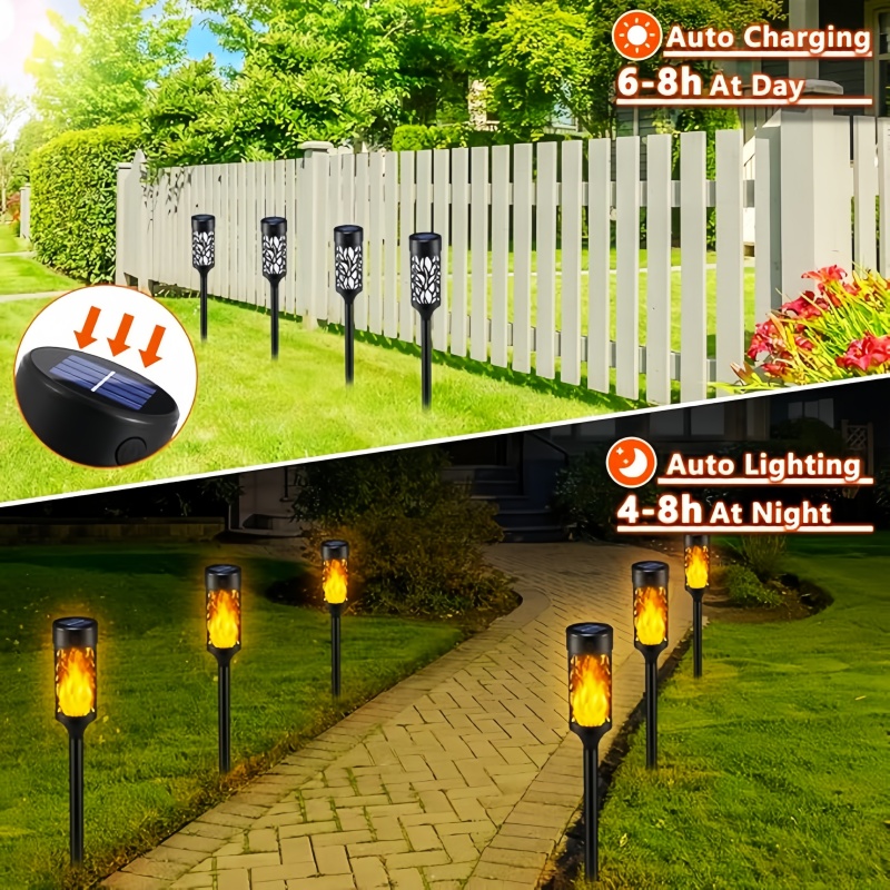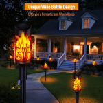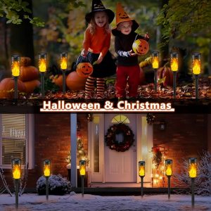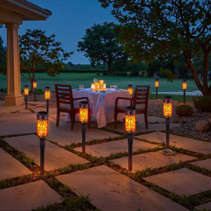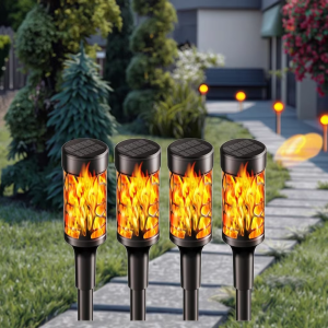 Solar lights can withstand most weather condition like rain and snow, which has better waterproof performance than general solar flame lights on the market. Attractive flickering flame solar torch lights will provide a warm and cozy atmosphere for your home outdoor decor.