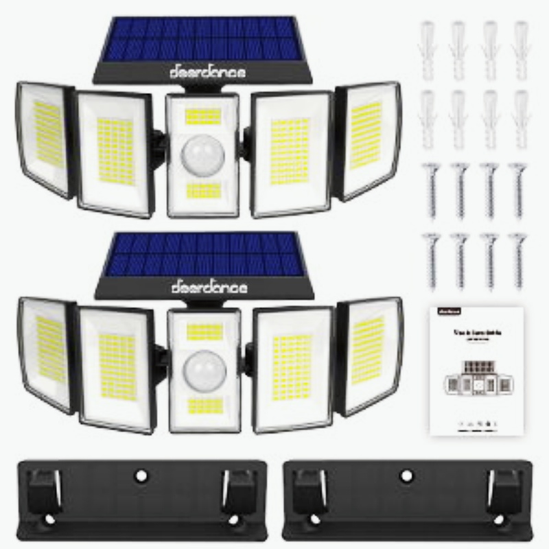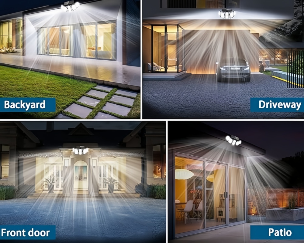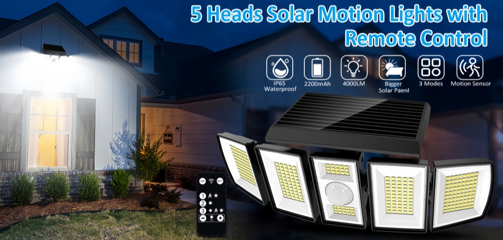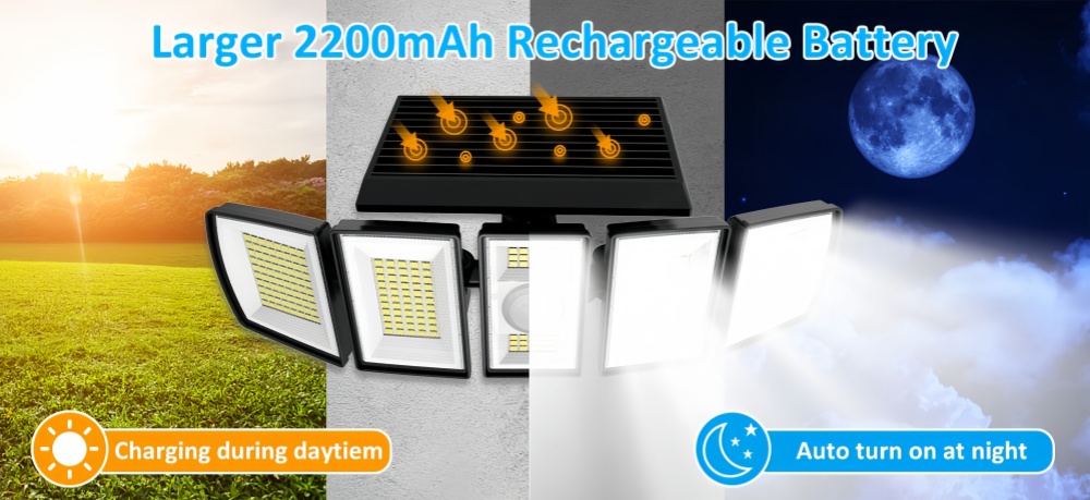 Our solar lights outdoor are equipped with 5 heads, wide-angle lighting to meet various needs.The flood wall lights cover up to 1000 sf. ft.making them perfect for your backyard, porch, and garage pathway, ensuring a safer night environment for you and your family.solar dusk to dawn lights outdoor.