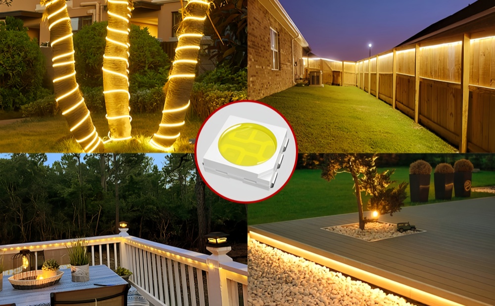 LED strip light, flexible and resistant to bending, ideal decoration for outdoor patios, decks, trees, parties, parks, houses, swimming pools, parties, festivals and landscape fountains. Selected 800 high-quality LED lamp beads with a color temperature of 2700K-3000K, the light is uniform and soft, taking care of your eyes.