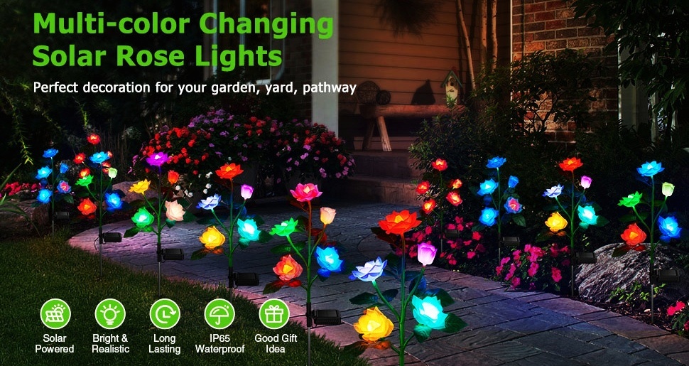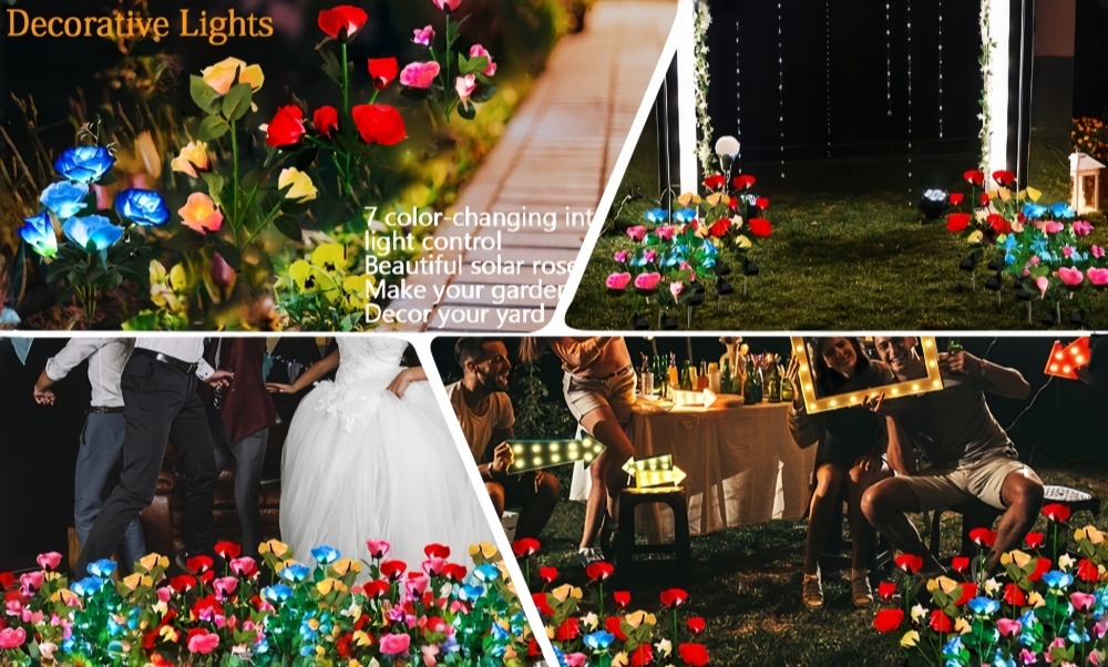 Be sure to watch the product video on the product page so you can really see its ever-changing beauty,Solar roses will slowly change in 7 different colors at night, they are like magic flower fairies lighting up your garden, paths and giving you a fantastic experience. During the day, these realistic decorative flowers lights are still very beautiful.