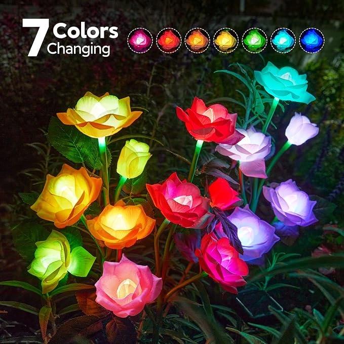 Be sure to watch the product video on the product page so you can really see its ever-changing beauty,Solar roses will slowly change in 7 different colors at night, they are like magic flower fairies lighting up your garden, paths and giving you a fantastic experience. During the day, these realistic decorative flowers lights are still very beautiful.