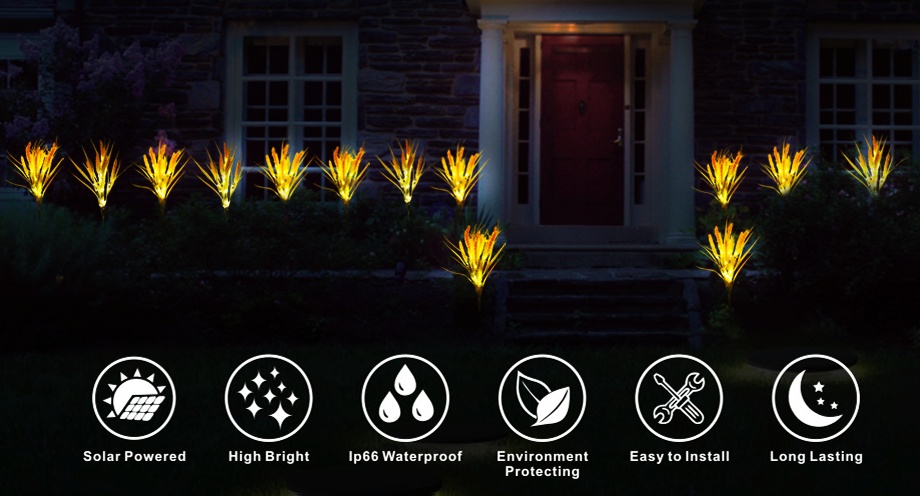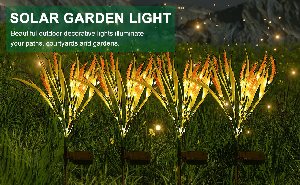 Solar Wheat Flowers Outdoor waterproof Lights automatically light up in the dark to illuminate your garden and pathway. Garden decor lights with beautiful-color can create a romantic atmosphere of any occasions, whether it is for a backyard event, or just the finishing touch on your outdoor masterpiece.