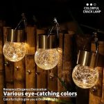 Come with a built-in solar powered rechargeable battery, these hanging tree lights require no extra electricity cost. Our solar powered ball lights adopt upgraded monocrystalline silicon solar panel which can better collect sunlight and charge the battery in higher efficiency. Continuous working time can up to 8-10 hours at night after being fully charged.