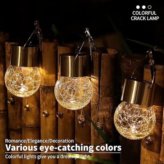 Come with a built-in solar powered rechargeable battery, these hanging tree lights require no extra electricity cost. Our solar powered ball lights adopt upgraded monocrystalline silicon solar panel which can better collect sunlight and charge the battery in higher efficiency. Continuous working time can up to 8-10 hours at night after being fully charged.