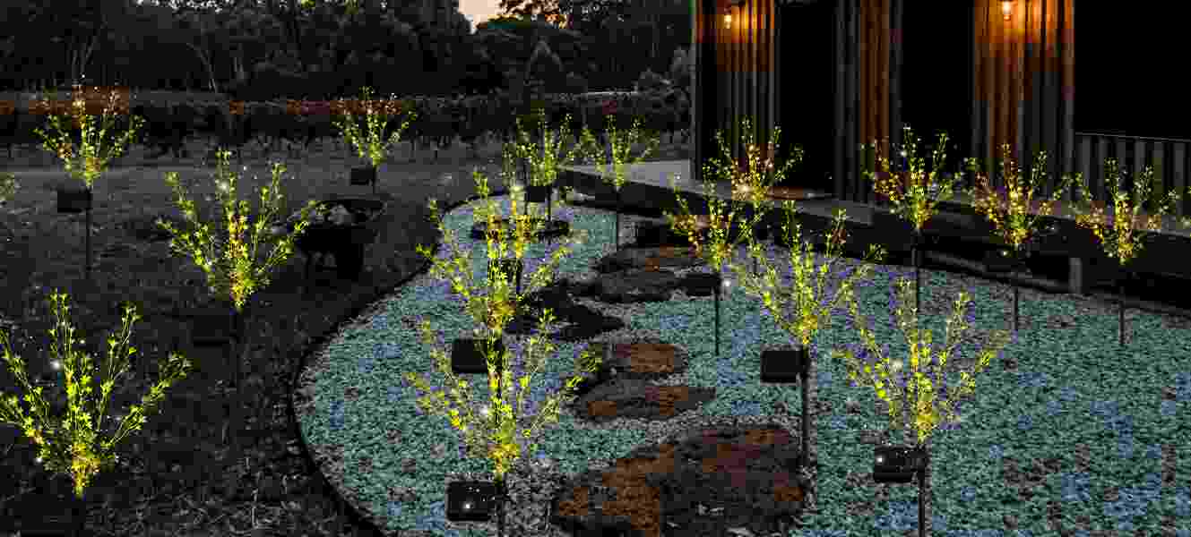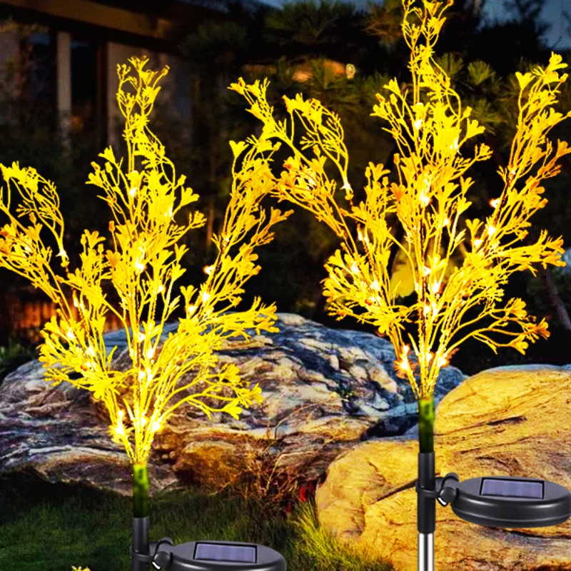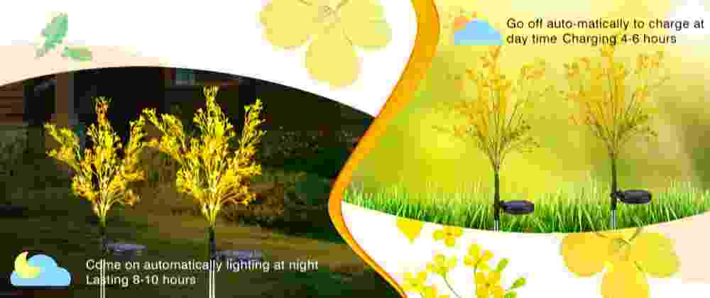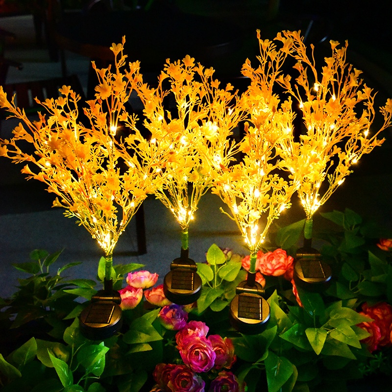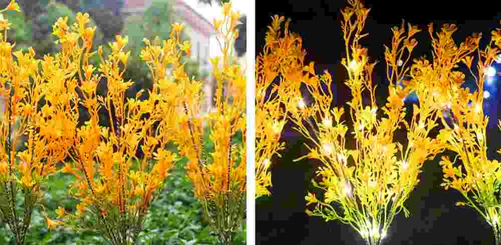 Solar garden lights simulation design. In the dark night, the golden lights make your garden full of romantic atmosphere. In the daytime, the real design of artificial artificial flowers will look like real flowers at a glance, providing a more vibrant decoration for your garden.