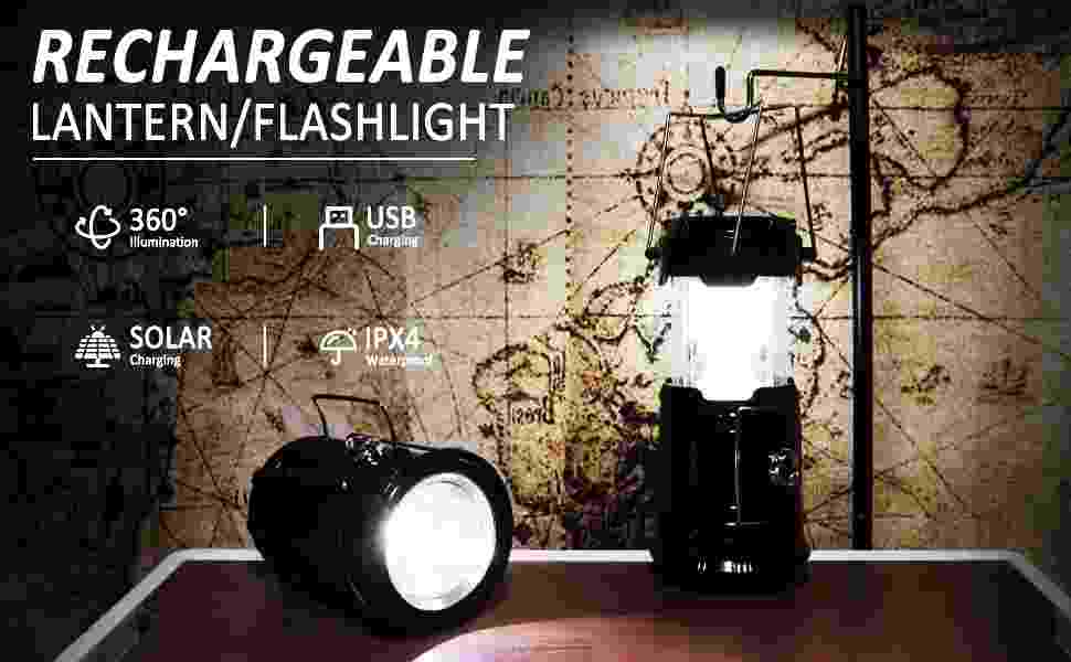 Portable LED Camping Lantern Waterproof USB Rechargeable LED Flashlight Solar Emergency Light