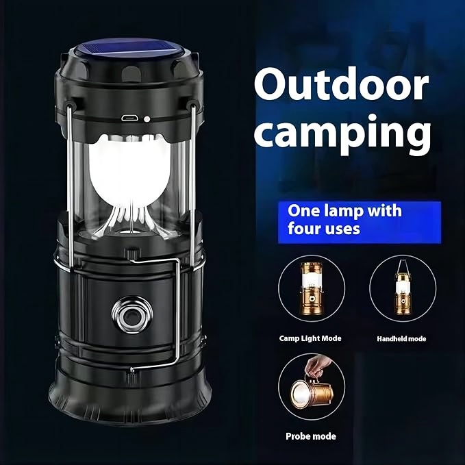 A solar folding led camping lantern light adopts LED chips, energy efficient/with wide range of visibility, provide a warm light embellishment space anywhere. Suitable for bedroom, dinner, reading, patio, garden, camping, walking etc.