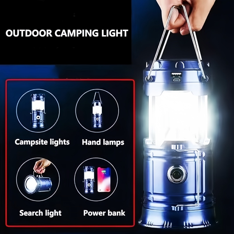 Portable LED Camping Lantern Waterproof USB Rechargeable LED Flashlight Solar Emergency Light