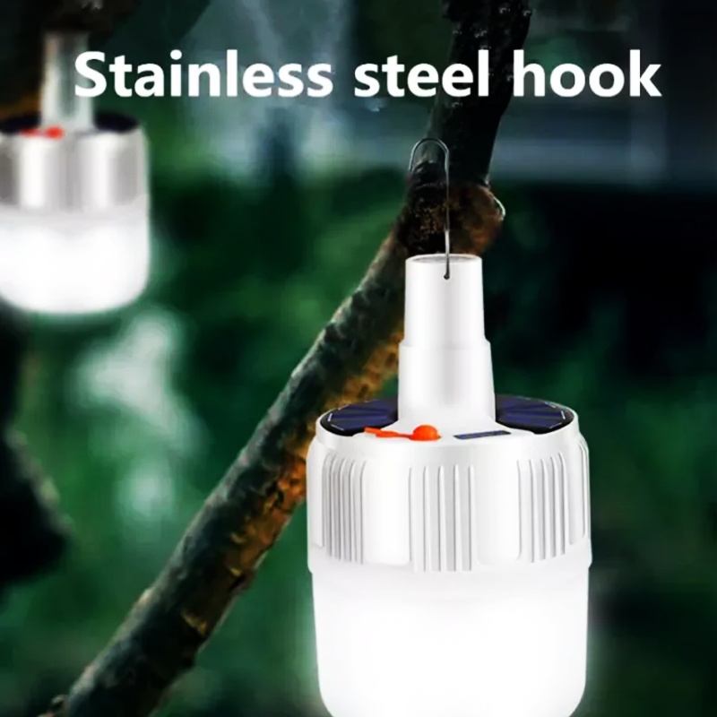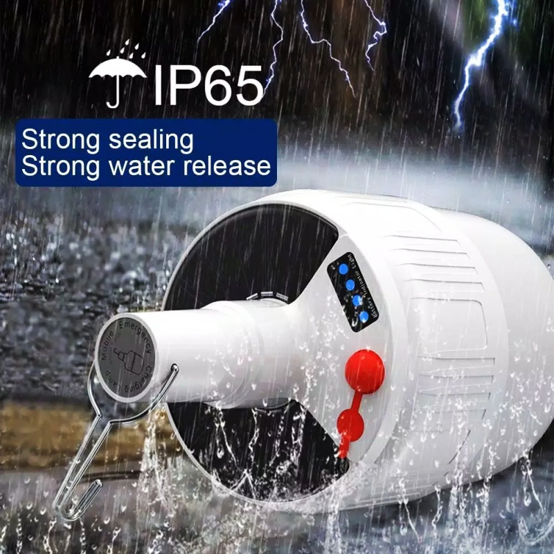 This dimmable rechargeable LED bulb provides 5 lighting modes. High light, constant light low light, flashing and SOS. You can choose the mode you want to meet different scenarios. IP65 waterproof design, suitable for various application scenarios such as camping, mountaineering, etc.without fear of wind, rain, and moisture.