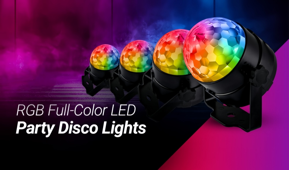 Enjoy artistic lighting and save money to boot. Each Full-Color Party Lights Dj Disco Lights contains three, 1-wattage LEDs,enduring for longer periods of time and using minimal energy to save you money on electric bills.