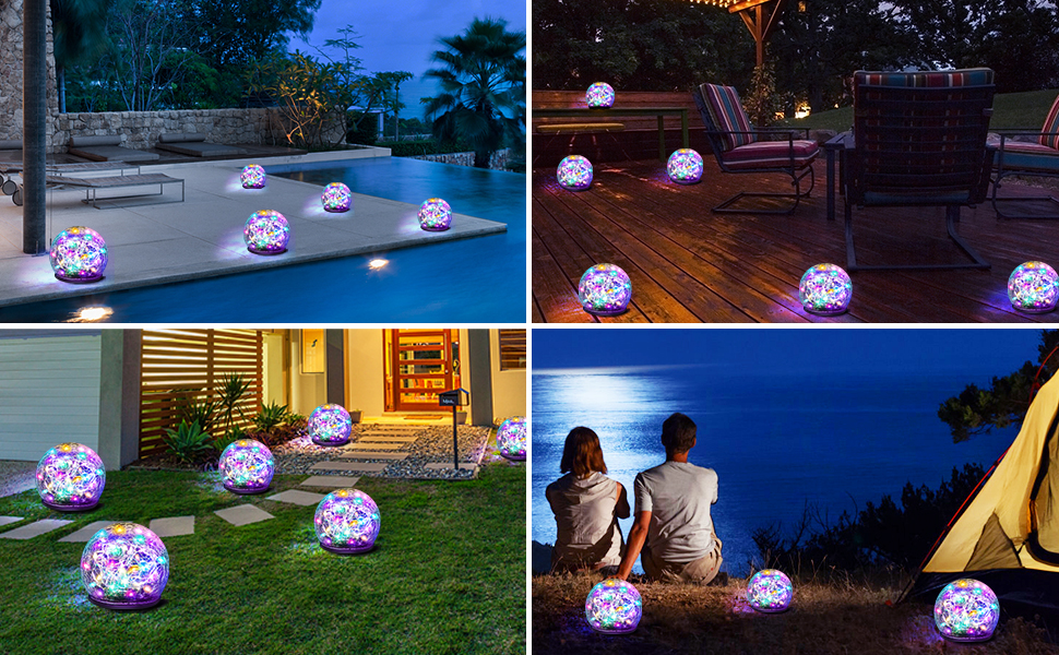 Solar gazing ball light can decorate and beautify your garden, patio, lawn, outdoor table, landscape path, driveway, walkway, sideway, backyard, porch, balcony, step, pool, camping, party, wedding, Halloween, Christmas, garden restaurant and more. Each package contains 2 globe lights. We will provide you 24h friendly online customer service. Please contact us if you have any questions.