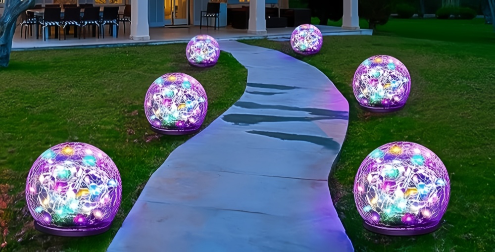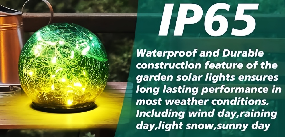 The solar lawn lights decorative are fully enclosed by ABS and cracked glass. Durable construction and weather resistant feature of the solar ball lights outdoor. Our garden lights are made of IP65 waterproof upgrade and there will be no condensation, can be used in bad weather conditions such as rain, snow, ice, wind and so on.