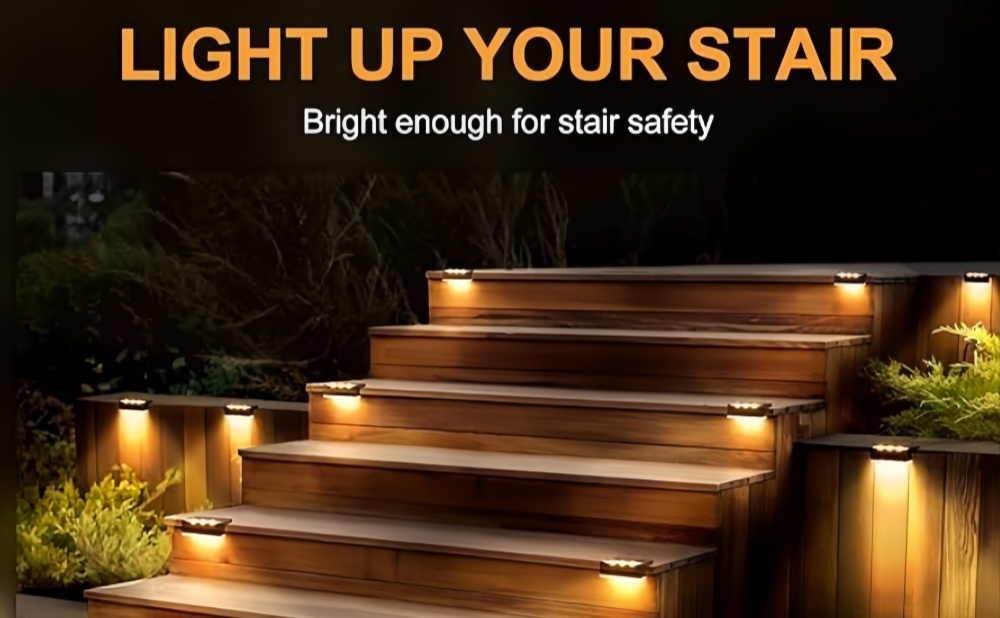 The solar stair light adopts IP65 waterproof design. With upgraded solar panels and rechargeable batteries, the solar stair lights can be lit in direct sunlight for 4-6 hours and up to 15 hours when fully charged.