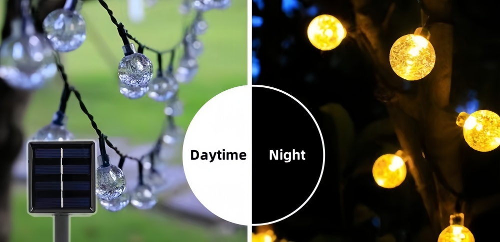 With this solar bubble rod string lights , you can easily decorate your outdoor area without additional cables. You can install it around trees, pool ,swing. Expose the solar panel to direct sunlight and make sure the solar panel is facing the sun directly,and after that you just sit back and enjoy them! They turn on at dusk and turn off at dawn by themselves!