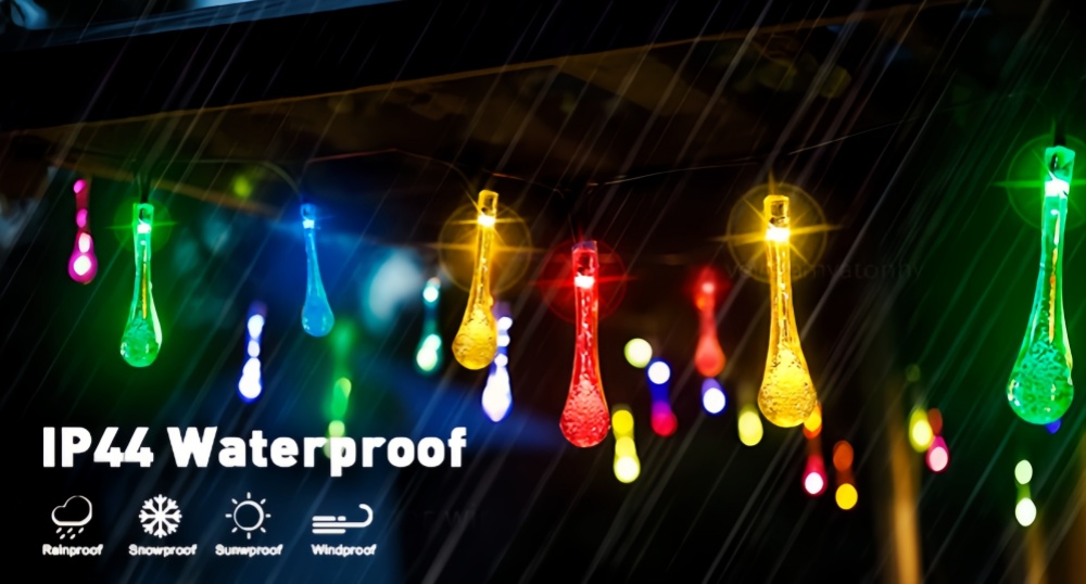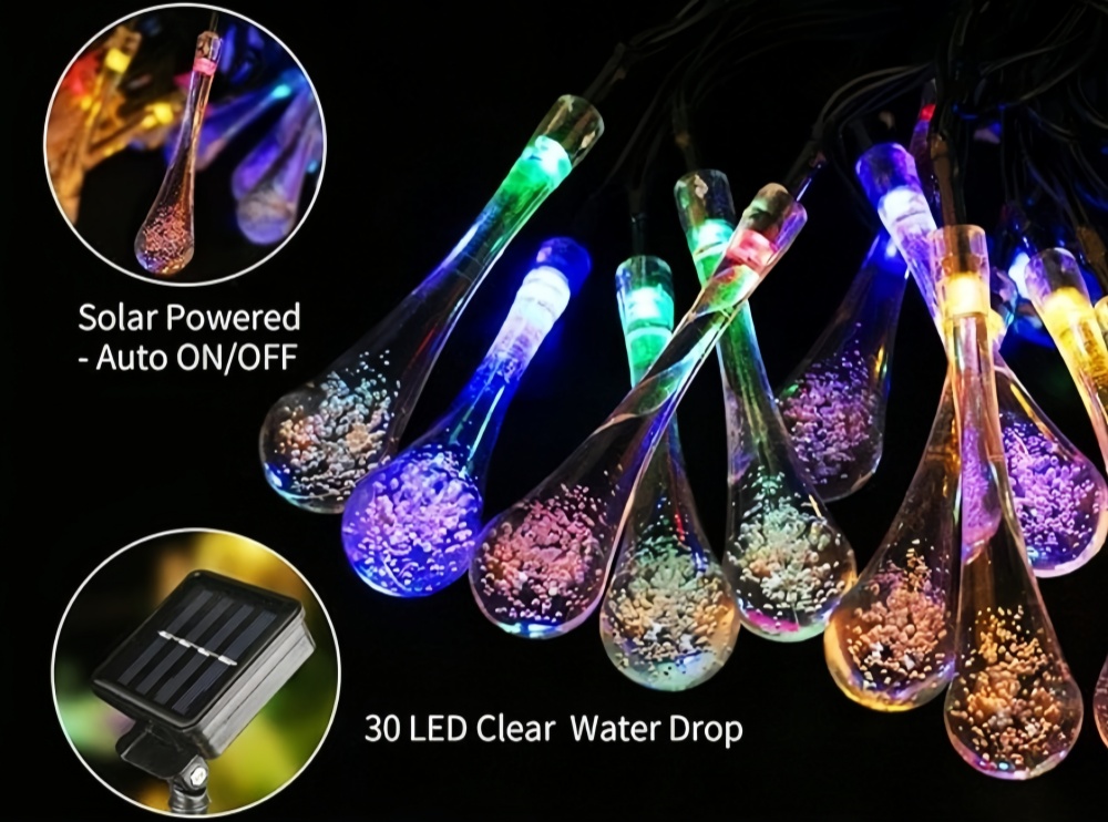 Solar Powered Water Drop String Lights